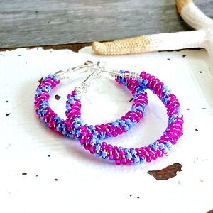 Pink & Purple Beaded Hoop Earrings, Seed Bead Jewelry Boho Handmade