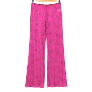 Pink Purple Mesh Flare Pants Psychedelic Sheer Festival Y2K Groovy Rave Size M