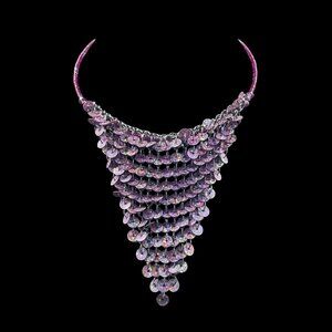 pink purple necklace, sequin necklace, statement necklace set, bib necklace, rave jewelry, festival necklace, boho necklace, hoop earrings set, costume jewelry, cosplay jewelry, iridescent necklace, party necklace, sparkle necklace, stage jewelry, bold fashion jewelry