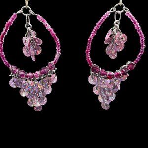Pink Purple Sequin Statement Necklace Earrings Set Festival Costume Party