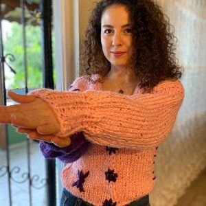 Pink, Purple Sweater for Woman with Buttons for Her Birthday Gift for Girlfriend