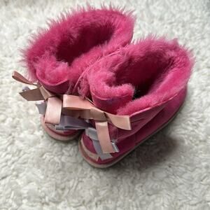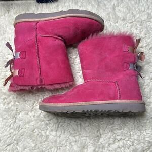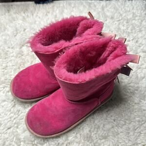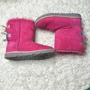 Pink Purple Ugg Bailey Bow Boots Kids Girly Fuzzy Used