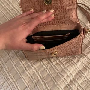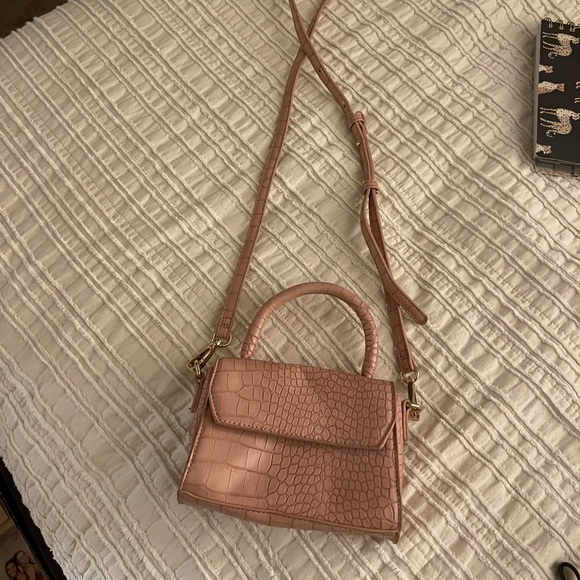 Used once. Looks new. Very small and fancy. You can take the long strap off. Looks tan in the picture but it’s a light pink.