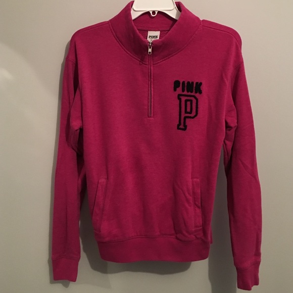 Raspberry Pink Quarter Zip with navy blue Pink and P logo