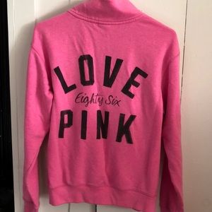 Pink quarter zip that is super soft and gently used. Size says XS but would fit up to a small.
