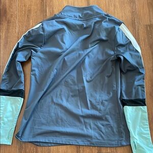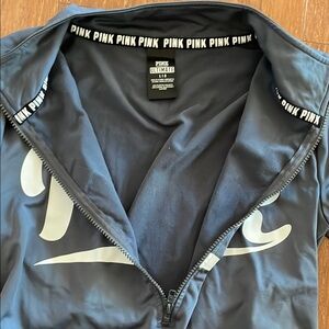 Stylish quarter-zip pullover with 'Pink' logo. Features blue and black accents. Used see pics for details .