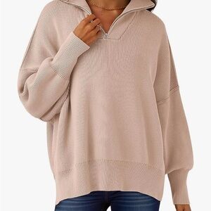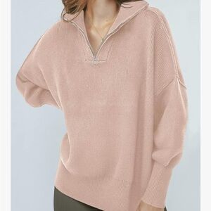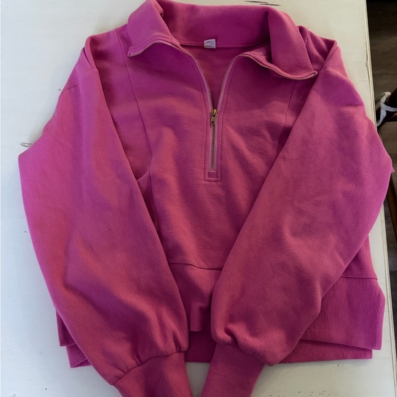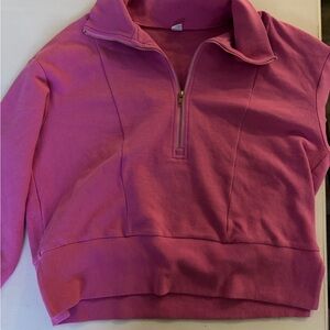 Stylish pink quarter-zip pullover. Perfect for casual wear. Color not available anymore, light pink photos show style, but it’s the darker pink color! Perfect condition!