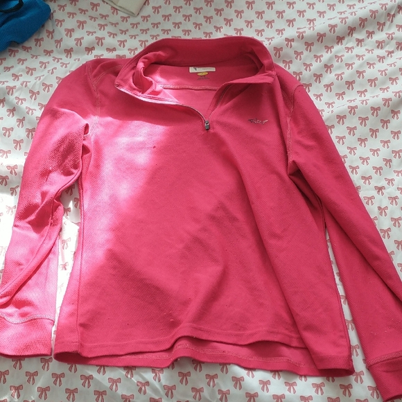Stylish pink quarter-zip pullover. Perfect for casual wear.