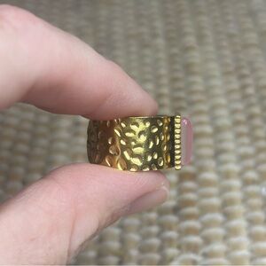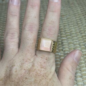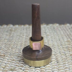 Pink Quartz Gold Tone Hammered Thick Band Adjustable Fashion Ring Women’s Size 8