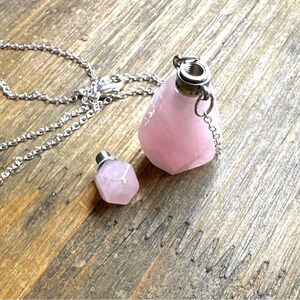 Pink Quartz perfume bottle pendant in 925 sterling silver maximalist chunky