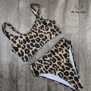 A sultry leopard-print bikini that captures the wild spirit of summer days. This high-waisted two-piece ensemble from Pink Queen features a flattering crop top design and stretchy polyester-spandex blend that moves like liquid gold against sun-kissed skin.
