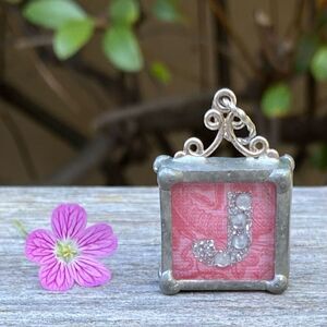 Pink Queen Crown and Initial "J" Charm/Pendant w/Silver Border EUC!