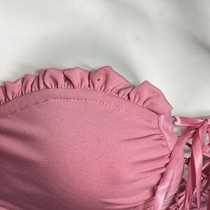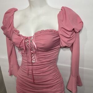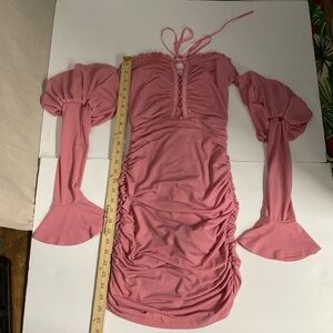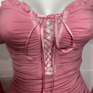 Fashion Nova Stretch fabric with zipper in back. Only worn once there’s a small stain on ruffle in the front. No other flaws. Product Details