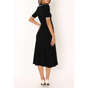 Pink Queen V Neck Short Women's Black Ribbed Swing Knit Midi Dresses
