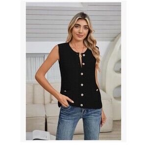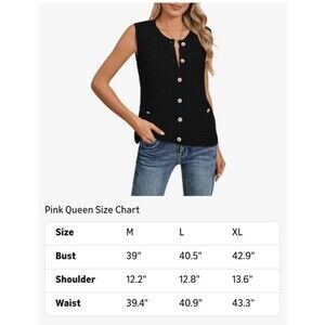 Pink Queen Vest Cardigan Coat Women Size XL Casual Knit Sleeveless Black