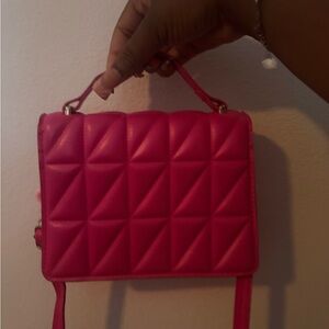 Stylish pink quilted handbag with a chic chain detail. Perfect for adding a pop of color to any outfit.