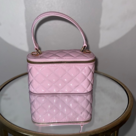 Elegant pink quilted handbag with a chic design, perfect for any occasion.
