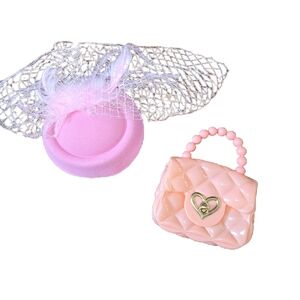 Chic and stylish pink quilted handbag featuring a charming heart detail. Perfect for adding a touch of elegance to any outfit. little girl little Miss press hat with Veil Plastic Purse is about 3 in tall