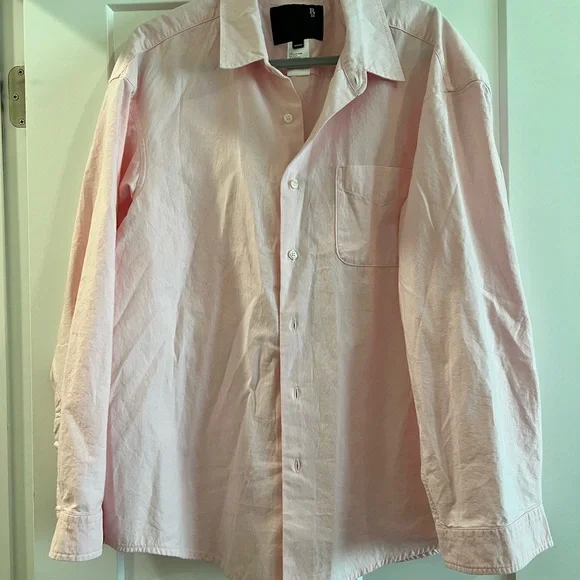 100% Cotton R 13 over size light pink button up. Pristine condition, smoke free home. See photos for details and measurements.