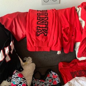 Red classic joggers and the rose shirt??im going thru your other stuff as well.