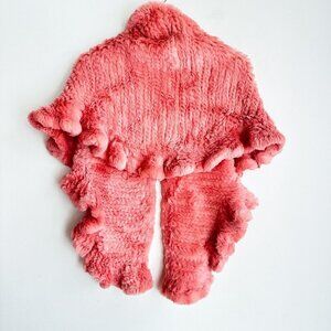 Pink Rabbit Fur Woven Triangular Shawl Scarf Wrap.