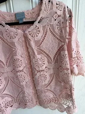 Pink Rabbit Rabbit Rabbit Crocheted Lace Women's Top Size L