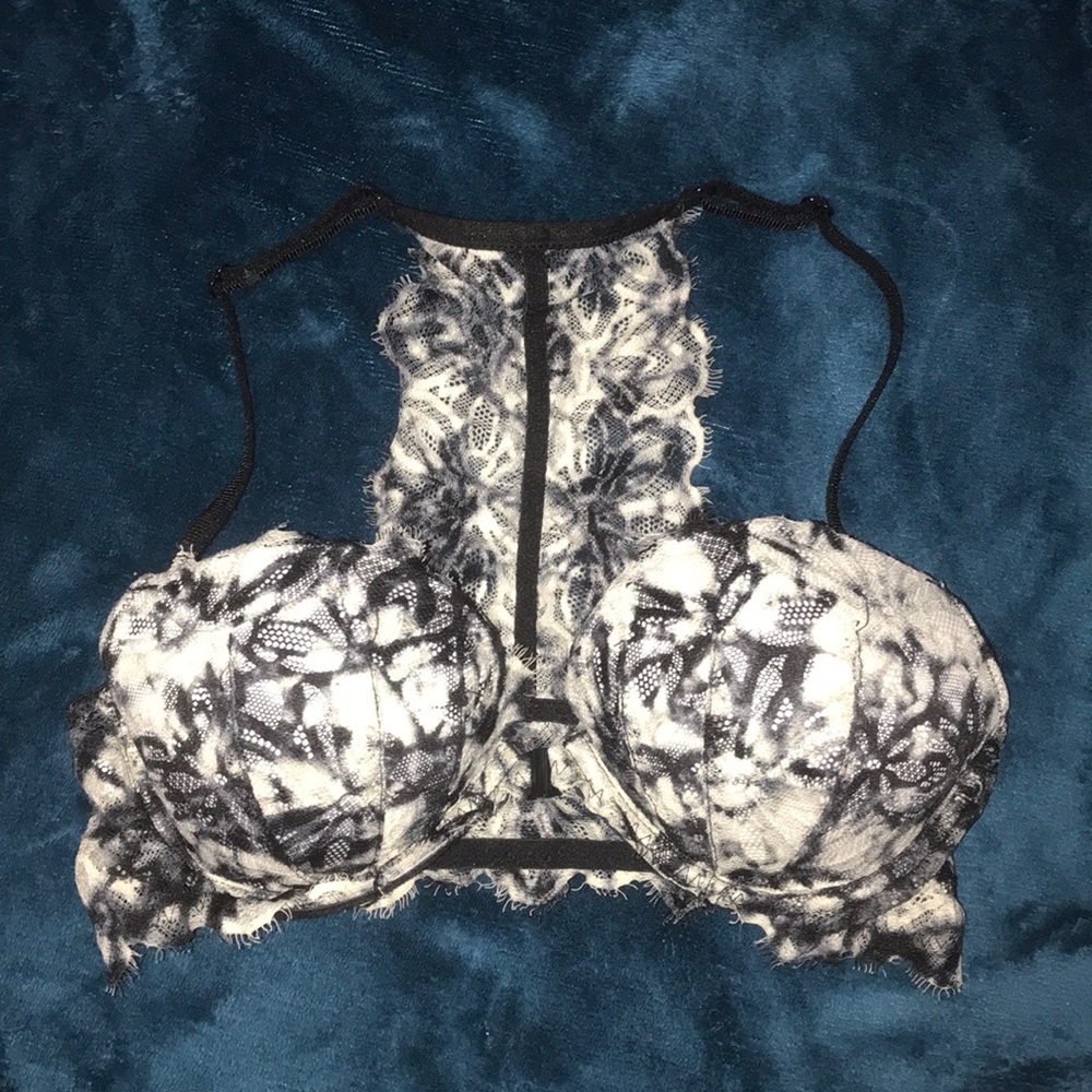 Lightly lined Pink bra with front clip, semi worn and lace