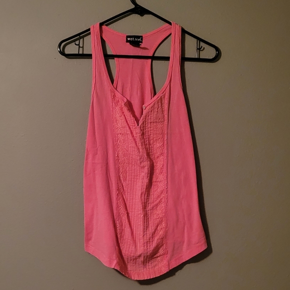 Racerback Style Henley front with Buttons Lace Detail Smoke and Pet Free Home