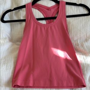 Stylish pink racerback tank top. Perfect for workouts or casual wear.