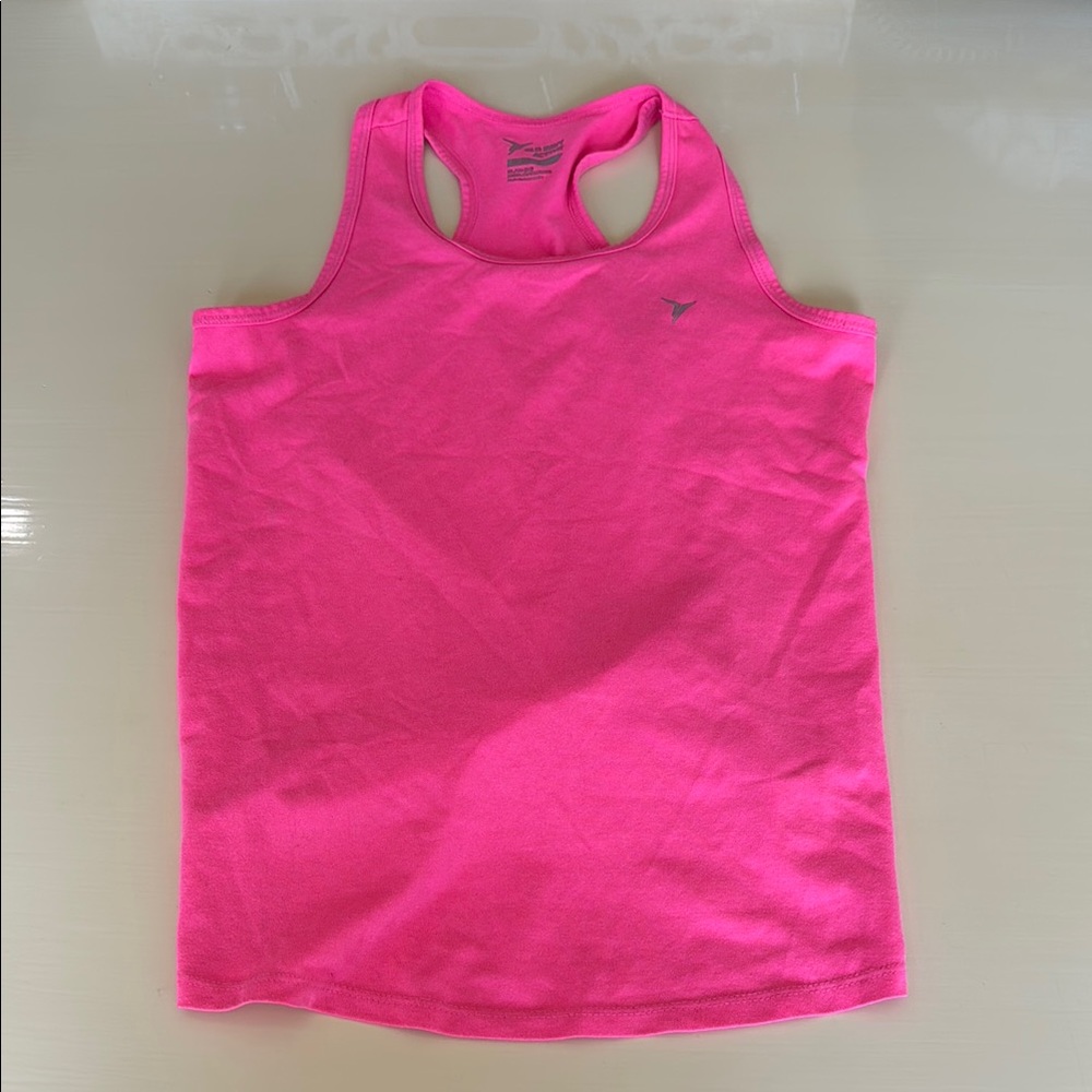 Vibrant pink racerback tank top. Perfect for workouts or casual wear.