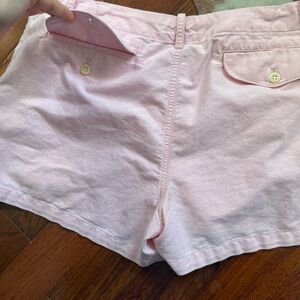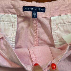 ralph lauren women’s shorts in soft pastel pink with navy blue embroidered polo logo. size 12, fits true to size. in excellent condition with no signs of wear