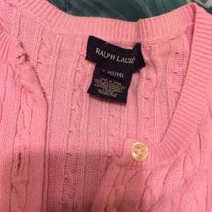 Adorable little sweater from Ralph Lauren. Grew out of it a long time ago. Large in kids. Very small stain that's not noticeable.