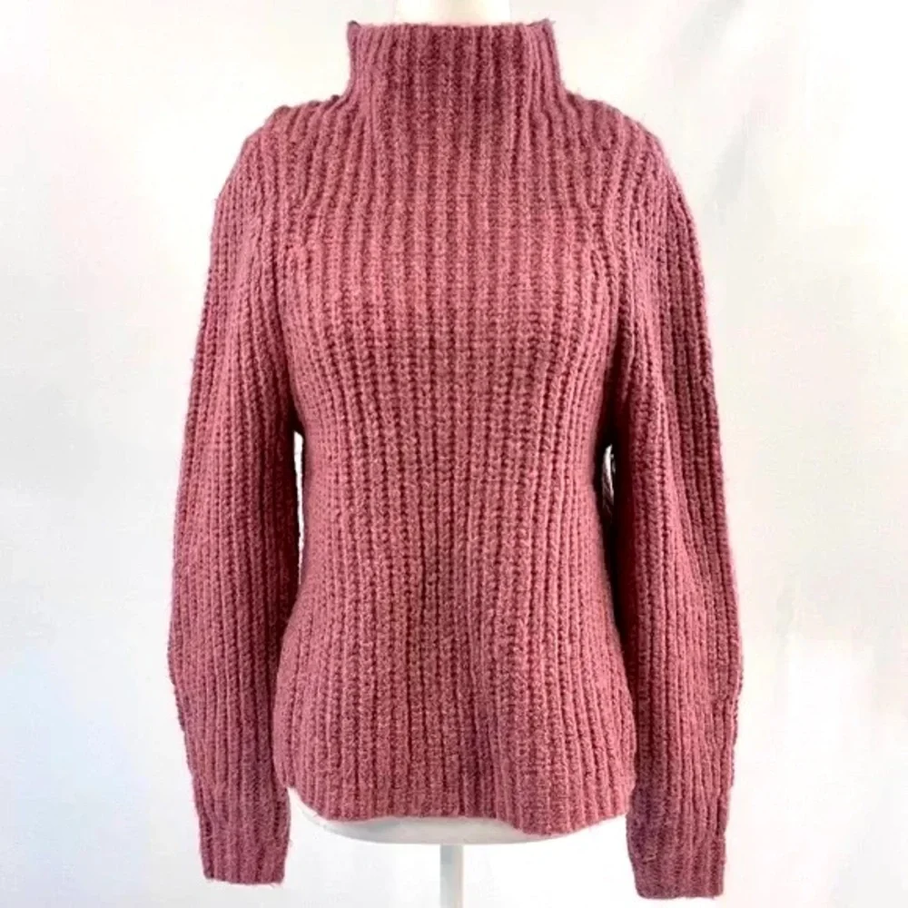 Soft ribbed knit sweater in a dusty rose / mauve pink shade.