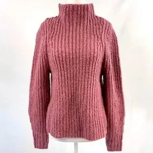 Pink Raspberry Ribbed Knit Mock Neck Chunky Sweater