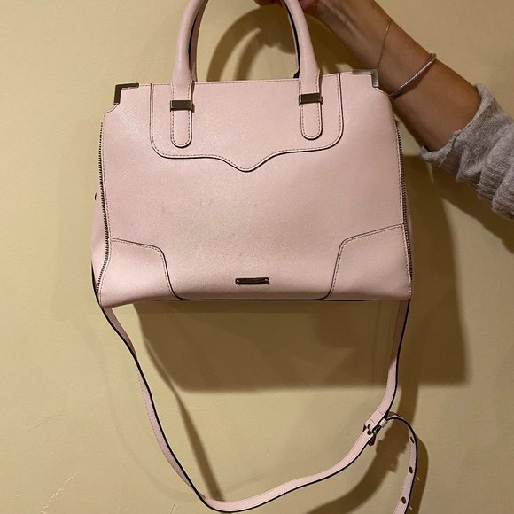 Pre-loved Pink Rebecca Minkoff Leather Satchel / Crossbody with adjustable strap and silver hardware. Minor scuffs on the front of the bag otherwise in like new condition with dust bag included.