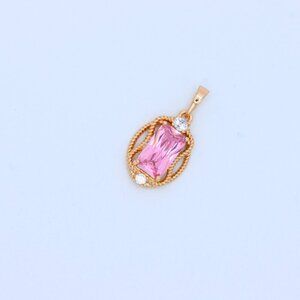 "Pink Rectangle Pendant with Gold Plated Brass and Crystal Accents, XPPT1681 Elegantly designed pink pendant encased in a rich gold twisted frame. ✅ Gold plated over high-quality, durable brass ✅ Eye-catching rectangular pink gemstone centerpiece ✅ Accented with sparkling white crystals on both ends ✅ Size: Approximately 0.59 x 0.79 inches (1.5 x 2 cm) ✅ Lightweight and comfortable for all-day wear ✅ Makes a perfect gift or statement jewelry piece"