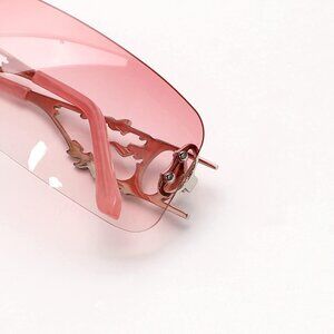 Pink Rectangle Vintage Fashion Flame Metal Sunglasses For Women Men Eyewear
