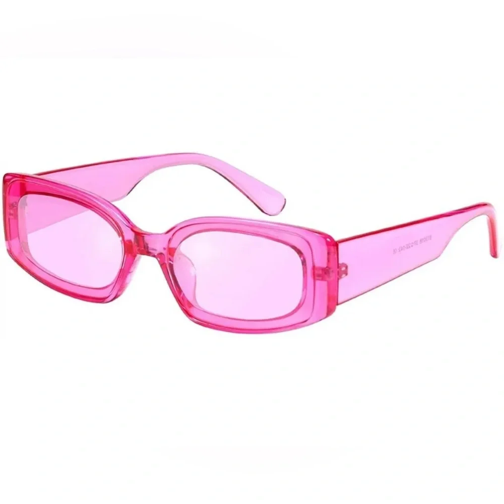 Stylish pink rectangular sunglasses perfect for any occasion. Add a pop of color to your outfit with these chic accessories.