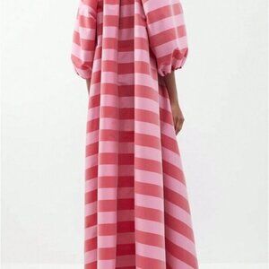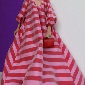 Pink Red Casual Women's V-Neck Striped Maxi Dress
