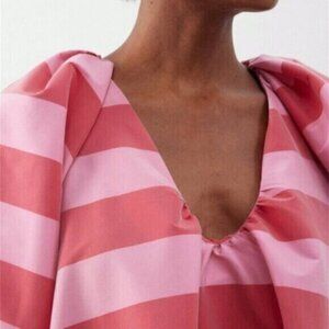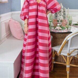 Pink Red Casual Women's V-Neck Striped Maxi Dress