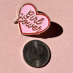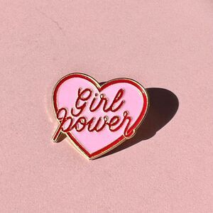Pink Red Girl Power Feminist Heart Enamel Pin