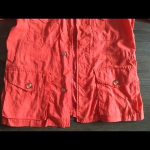 Pink/red cargo style jacket. Light to wear, perfect for fall. Excellent used condition. Size SMALL. Could fit a medium.