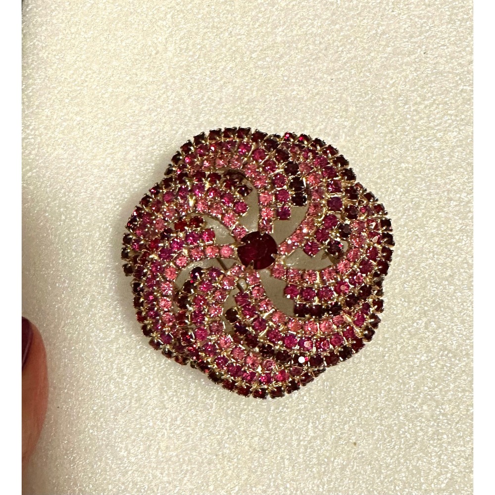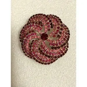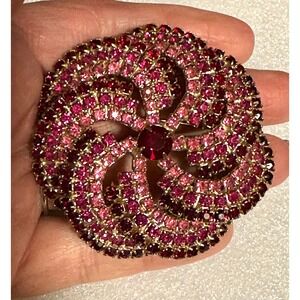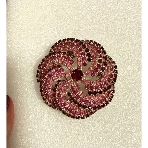 Pink & Red Rhinestone Pinwheel Flower Pin