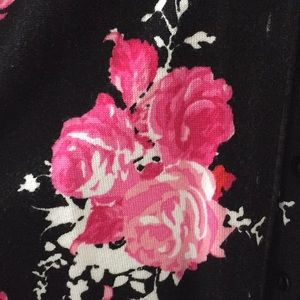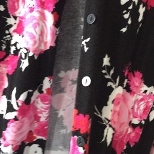 PM Charter Club Rose patterned cardigan. Black background with red, pink and white detail. Interior white. All buttons intact. Great condition. Don’t have anything to wear with it. Great for Valentine’s Day or a retro look