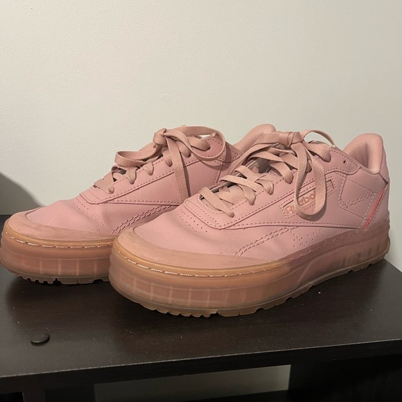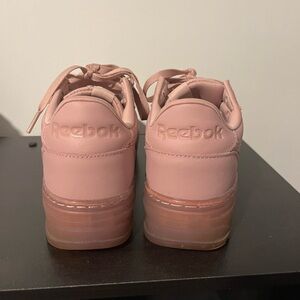All pink Reebok. Barely worn. Semi-Translucent bottoms. I love these shoes! Great structure and comfortable. Just bought them in the wrong size.