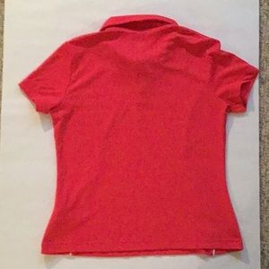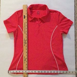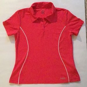 Bright Pink Reebok shirt with white piping detail, short sleeves, size medium. Golf course approved. Matches many Lilly Pulitzer patterns. Very flattering!