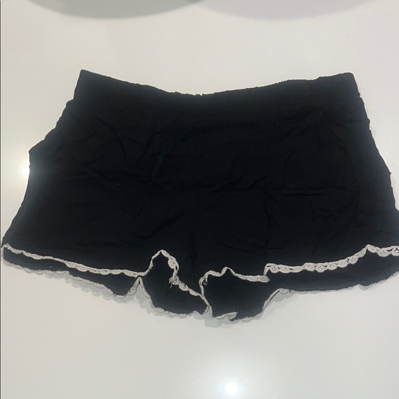 Chic black shorts with delicate white lace trim. Perfect for comfort and style.