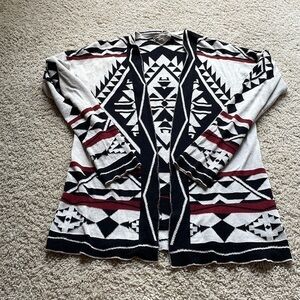 Pink Republic Black/White/Red Southwestern Print Open Front Cardigan Size L EUC
