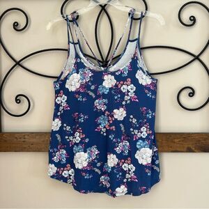 Pink Republic Blue Magenta Floral Crop Spaghetti Strap Cami Tank Size S