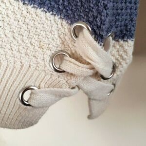 Pink Republic Blue/White Striped Ragland Sleeve Sweater Lace-up Hem Details SZ L